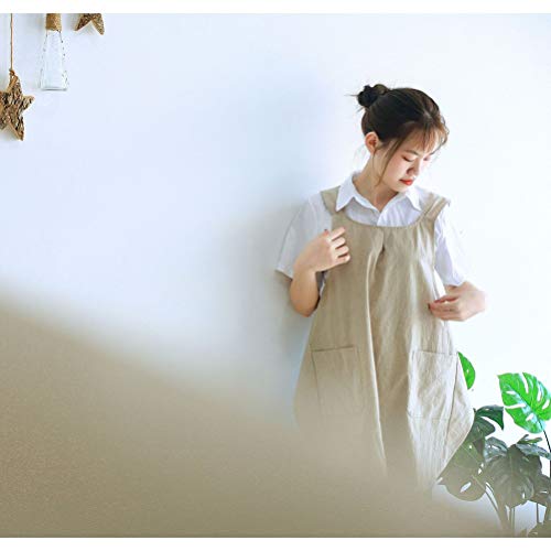 Cabilock - Grembiule in lino in morbido cotone con motivo a croce, bendaggio giapponese, a forma di doppia tasca, da cucina, ideale come regalo per le donne