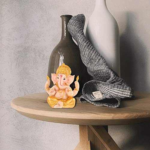 Cabilock Gold Hindu Elefante Dio Statuetta di Ganesha Elefante Dio Statua Buddha Elefante Scultura indù da tavolo ornamento per la casa e l'ufficio, decorazione da scrivania