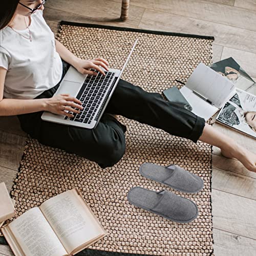 Cabilock Pantofole usa e getta, in lino, per hotel, 10 paia di pantofole, per ospiti, per donne, uomini, inverno, estate, casa, viaggio, hotel, spa, salone, grigio