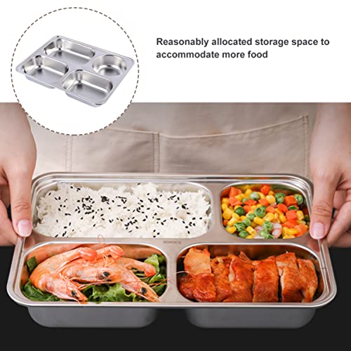Cabilock Piatto in acciaio inox, 4 scomparti, diviso, vassoio menu, piatto divisorio, vassoio per mensa, vassoio per la scuola, buffet pranzo