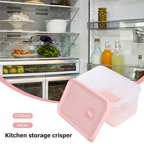 Cabilock Scatola Frigo Frigo Cucina in Plastica Contenitore per Drenaggio Alimenti Scomparto Diviso con Coperchi per Frutta Verdura (Rosa Grande)
