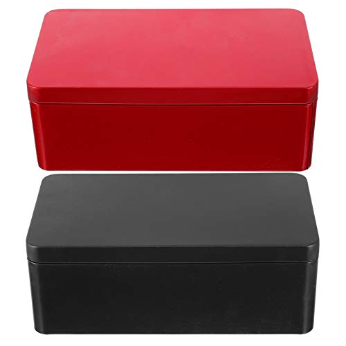 Cabilock Scatola di Latta Rettangolare con Cerniera, 2 Pezzi, Contenitore in Metallo con Coperchio, Contenitore per tè Vuoto, Mini Candele, per la casa, Rosso e Nero