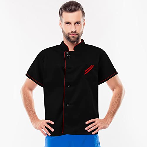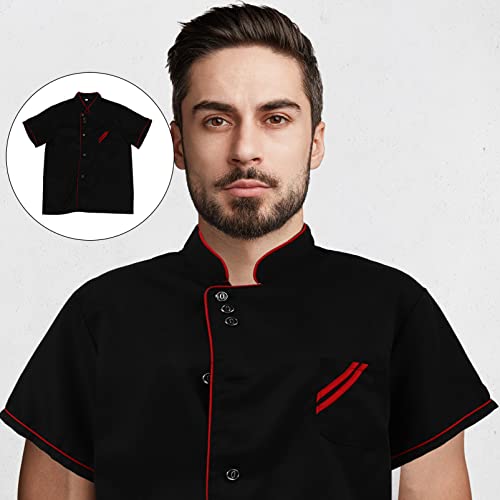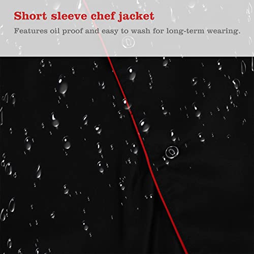 Cabilock Unisex Chef Coat Black Short Sleeve Chef Jacket Uniform Food Service Catering Shirt Cloth for Hotel Restaurant Bakery Cooker Size L