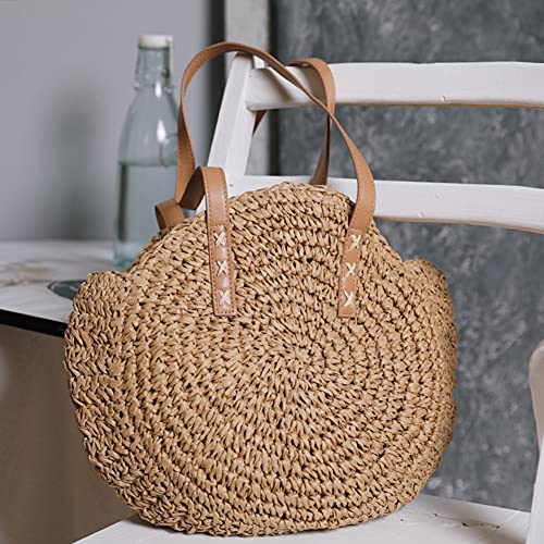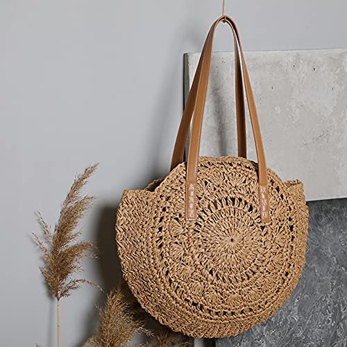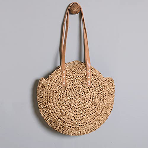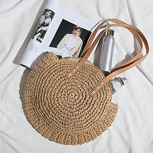 La Cabina Borsa a Tracolla in Paglia Intrecciata Borsa Paglia Rotonda Borsa da Spiaggia Paglia Grande Estiva Borsa Paglia Mare Borsa a Mano Donna (Marrone Chiaro)