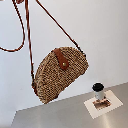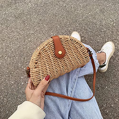 La Cabina Borsa a Tracolla in Paglia Intrecciata Borsa a Spalla Paglia Elegante Borsa da Spiaggia Paglia Estiva Piccola Borsa Paglia Mare Donna (Marrone)