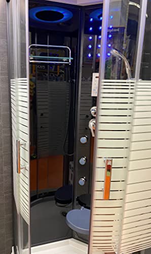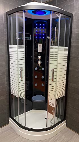 Cabina doccia idromassaggio 80X80X220cm con interno nero e porte in vetro trasparente. Per il massimo comfort in poco spazio. Il relax di un centro benessere con la cromoterapia direttamente a casa tua.
