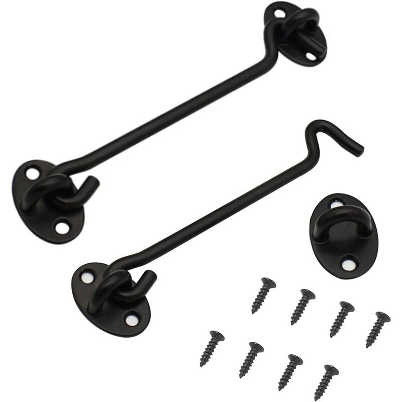Materiale durevole: il gancio di chiusura della porta è realizzato in acciaio inossidabile, la superficie è spazzolata, bella e lucida, non facile da sbiadire, resistente all'ossidazione e alla corrosione. Design speciale: dopo il design speciale del gancio, può essere utilizzato anche come porta tappo. Anche quando le porte non sono completamente allineate, queste serrature e catenacci con gancio da cabina hanno sufficiente libertà di movimento e possono essere fissati in modo sicuro. Perfetta vestibilità: i ganci per la cabina e la serratura a occhiello sono neri opachi, facili da abbinare. diversi stili di porte e finestre, se moderne, country, retrò, stili di moda possono essere integrati. Adatto per porte fisse di capannoni, porte da giardino, ante di armadi, porte in legno massello, porte finestre, persiane e finestre, ecc. Facile da installare: ogni chiusura a occhiello ha 4 viti, non è necessario spendere soldi per riacquistarla. È sufficiente praticare le viti attraverso i