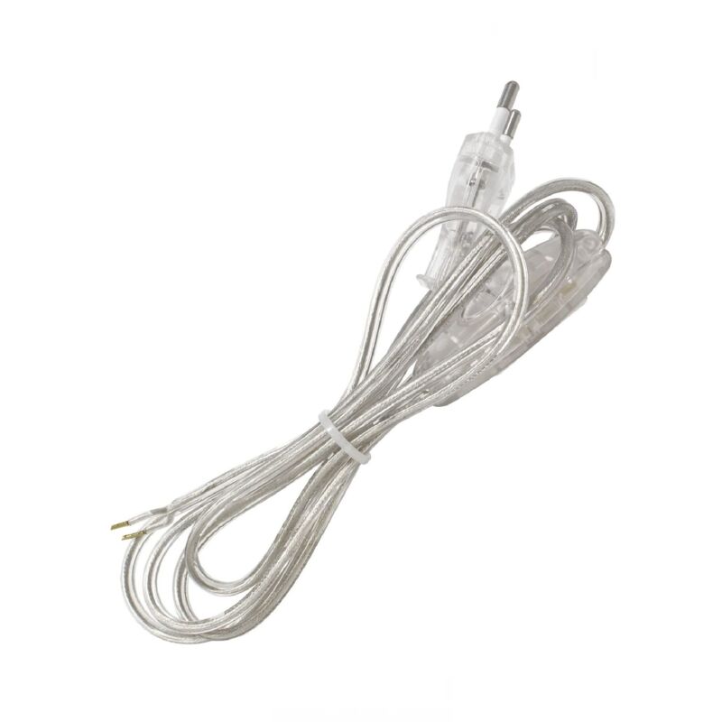 Cavo di cablaggio per abat jour -Colori: nero, bianco, oro e trasparente -Lunghezza: 1,5 m Cavo di cablaggio per abat jour con interruttore e spina disponibile in diversi colori. Colori: nero, bianco, oro e trasparente Lunghezza: 1,5 m