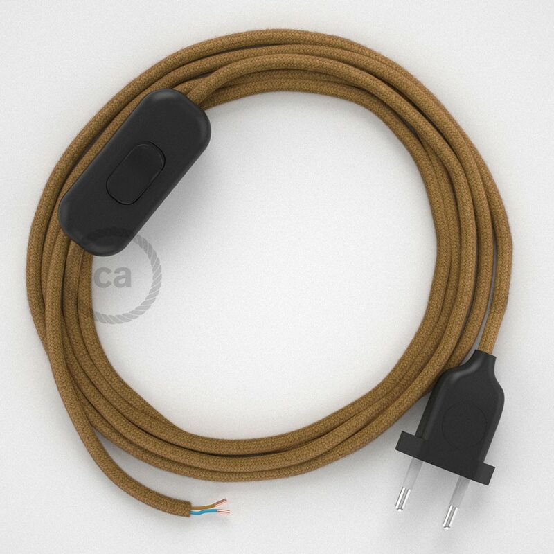 - trasparente, per dare ancora più risalto al cavo. Realizziamo su richiesta cablaggi con lunghezze diverse, contattaci per maggiori informazioni e per un preventivo. Cavo di alimentazione, cablaggio per lampada con spina e interruttore. Cavo Rotondo in Cotone. Colore cavo: RC31 Miele Dorato. Colore spina e interruttore: Nero, Bianco o Trasparente. Lunghezza cablaggio: 1,80 m (100 cm da spina a interruttore + 80 cm da interruttore a fine cavo) 2x0.75.