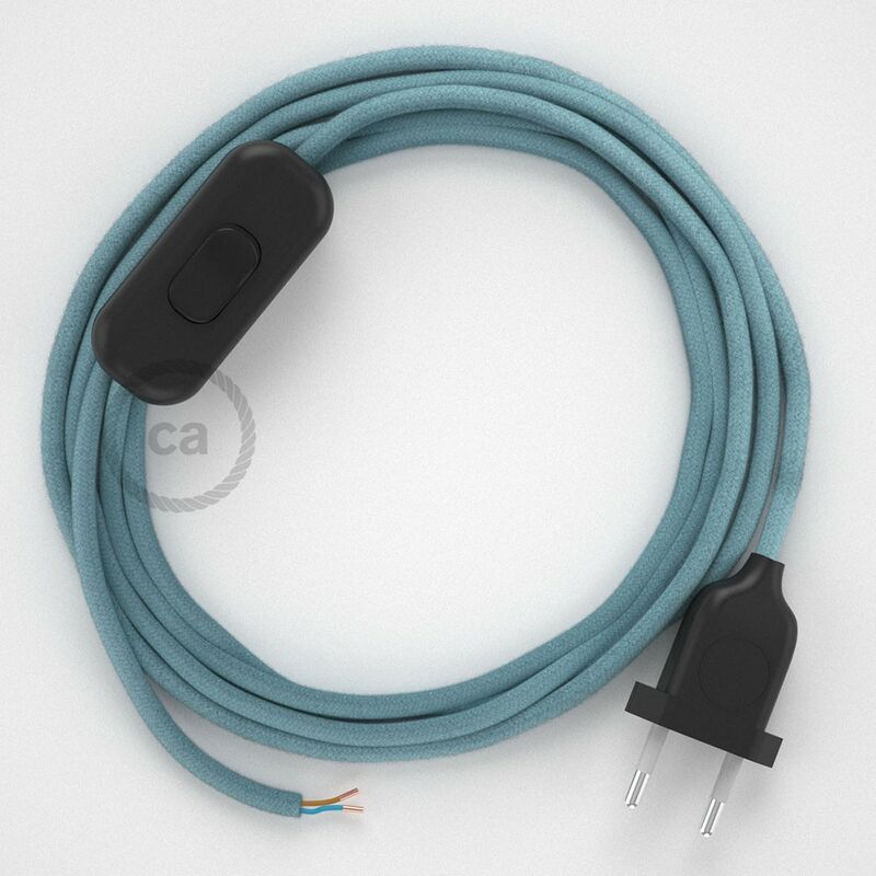 - trasparente, per dare ancora più risalto al cavo. Realizziamo su richiesta cablaggi con lunghezze diverse, contattaci per maggiori informazioni e per un preventivo. Cavo di alimentazione, cablaggio per lampada con spina e interruttore. Cavo Rotondo in Cotone. Colore cavo: RC53 Oceano. Colore spina e interruttore: Nero, Bianco o Trasparente. Lunghezza cablaggio: 1,80 m (100 cm da spina a interruttore + 80 cm da interruttore a fine cavo) 2x0.75.