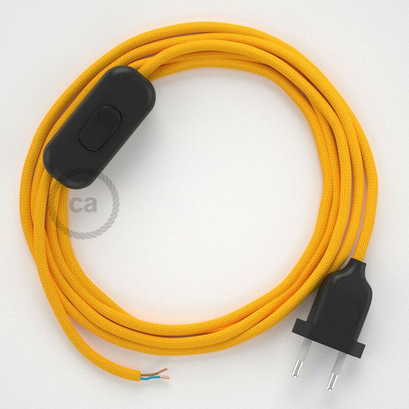 - trasparente, per dare ancora più risalto al cavo. Realizziamo su richiesta cablaggi con lunghezze diverse, contattaci per maggiori informazioni e per un preventivo. Cavo di alimentazione, cablaggio per lampada con spina e interruttore. Cavo Rotondo in tessuto Effetto Seta. Colore cavo: RM10 Giallo. Colore spina e interruttore: Nero, Bianco o Trasparente. Lunghezza cablaggio: 1,80 m (100 cm da spina a interruttore + 80 cm da interruttore a fine cavo) 2x0.75.