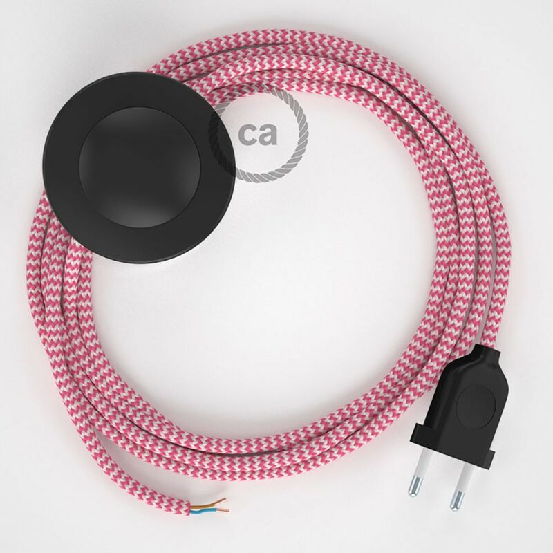 Rinnova una lampada da terra, dai nuovo colore ad una piantana grazie al cavo Rotondo in tessuto Effetto Seta RZ08 ZigZag Fucsia con spina e interruttore. Il cablaggio elettrico Creative-Cables per lampada da terra è assemblato in Italia partendo da componenti 100% Made in Italy per offrirti il massimo della qualità e della sicurezza. Lungo 300 centimetri, si adatta perfettamente a qualsiasi tipo di piantana. Scegli il colore dell'interruttore e della spina: - bianco, la soluzione più classica;