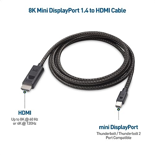 Il cavo da HDMI 2.1 a Mini DisplayPort 1.4 supporta le ultime tecnologie HDMI, tra cui video 4K 120Hz e 8K 60Hz;