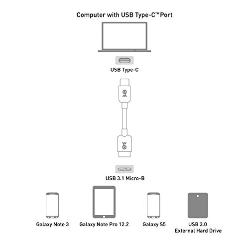 COMPATIBiLE con dispositive dotati di una porta USB 3.0 Micro-B come Samsung Galaxy S5, Galaxy Note 3, Galaxy Note Pro 12.2, e dischi rigidi portatili con USB 3.0 includendo Toshiba Canvio, Seagate FreeAgent, e Western Digital (WD) My Passport e Elements hard drives