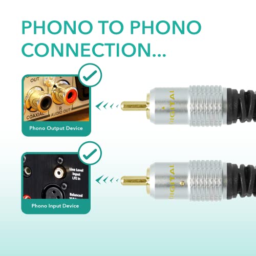 Cavo di lunga: il cavo singolo da RCA a RCA è realizzato utilizzando materiali di qualità con estremità del cavo placcato oro e estremità in metallo facili da impugnare. Questo cavo fono ha uno strato esterno in PVC per una maggiore e mobilità.