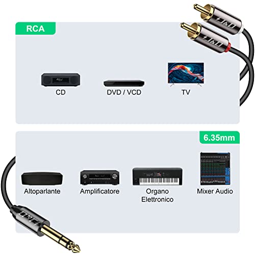 Perfetta Connessione: Collegamento di qualsiasi dispositivo con porte audio da 6,35 mm (1/4'') a ricevitore AV, altoparlante, amplificatore e altri dispositivi abilitati per RCA
