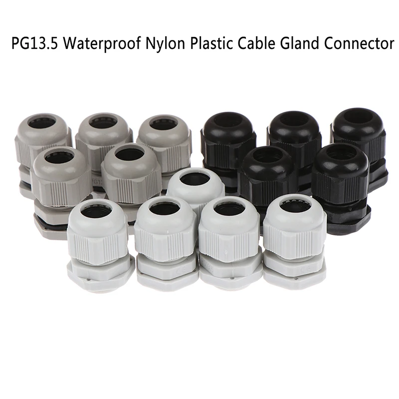 5pcs PG13.5 For Cable Range 6-12mm Wire Cable CE White Black Gray Waterproof Nylon Plastic Cable Gland Connector