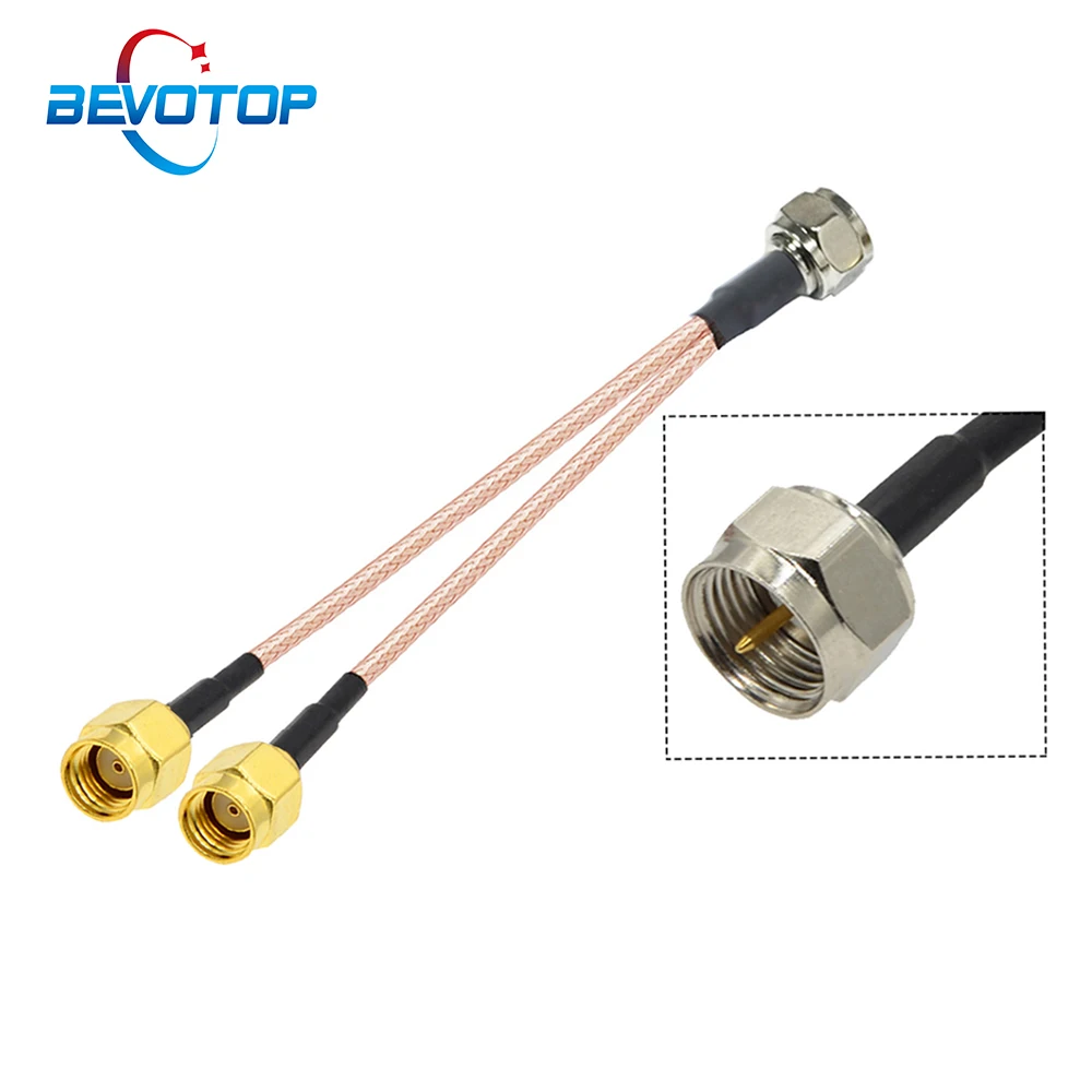 RF Cable Splitter F Male Plug to 2 x RP-SMA Male Adapter RG316 Pigtail Y Type Splitter Combiner RF Coaxial Extension Jumper 15CM