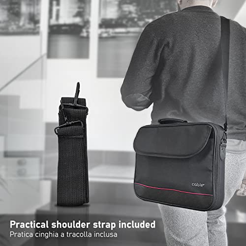 Cable Technologies Borsa Porta Notebook fino a 14.5 pollici, Custodia per Computer PC con Tracolla aggiuntiva,Finiture in Pelle,Materiale Resistente, Nera linea Rossa