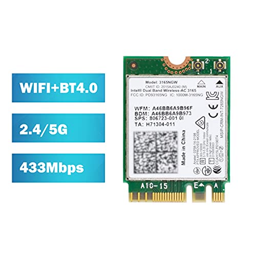 Cablecc Dual Band 2.4G 5Ghz 433Mbps 3165AC NGFF 802.11AC WiFi 3165NGW M.2 scheda WLAN + adattatore di rete BT 4.0