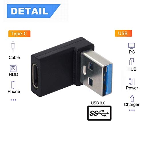 Cablecc - Adattatore da USB Tipo C femmina ad angolo di 90° alto a USB 3.0 A maschio, adattatore dati per computer fisso e portatile