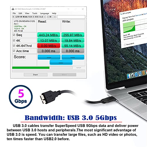 Cablecc Cavo 2 pezzi/set USB 3.1 USB-C tipo C a Micro 3.0 e USB 3.0 tipo A maschio a Micro 3.0 B maschio disk SSD cavo dati 15 cm