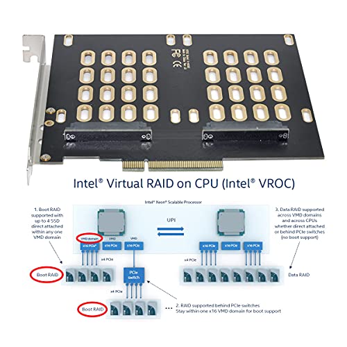 Cablecc Dual 2X U.2 SFF-8639 SSD a PCIE Express 3.0 Gen3 X8 X16 Raid Card VROC Raid0 Hyper Adapter