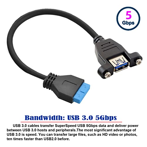 Cablecc USB 3.0 Single Port A Female Screw Mount Type to Motherboard 20pin Header Cable 25cm