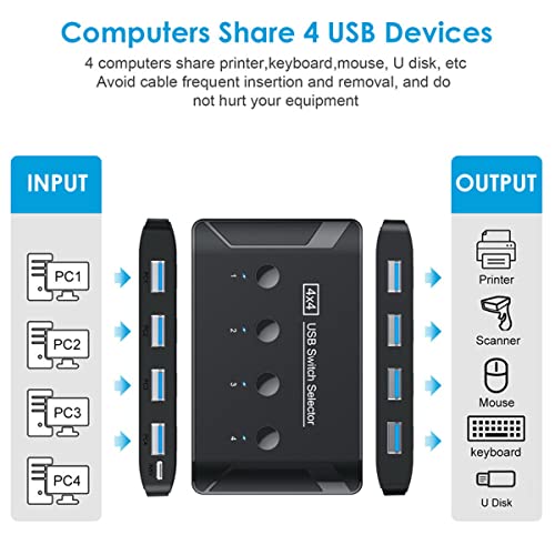 Cablecc KVM USB 3.0 Switch Selettore 4 Porte PC Condivisione 4 Dispositivi per Tastiera Mouse Scanner Stampante