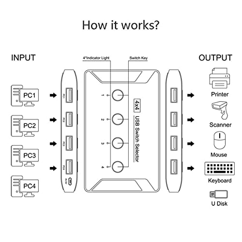 È ideale per condividere una stampante o uno scanner in un piccolo ambiente di ufficio. È ottimo anche per l'uso a casa se hai più PC o Mac. Ingresso USB (utilizzato nel computer): senza driver per Windows 10/8/8.1/7/Vista/XP e Mac OS X, Linux e sistemi Chrome OS.