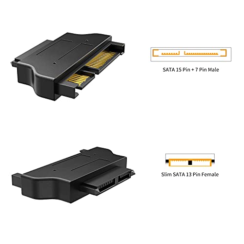 CableCreation SATA 22Pin Male to Slim SATA 13Pin Female Adapter, Slim SATA Adapter, 2.5€ Sata 22Pin to Slim 13pin female Converter