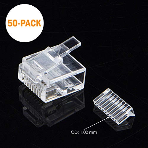 CableCreation 50-Pack Short RJ45 Cat 6 Modular Plug (Vestito a Due Pezzi), UTP Network connettore per Cavo Piatto Cavo Solido e Standard, Trasparente