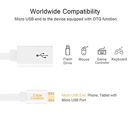 CableCreation Cavo adattatore piatto micro USB 2.0 OTG da USB maschio a USB femmina, per Samsung S7 S6 Edge S4 S3 Android o altri smartphone o tablet con funzione OTG, 15 cm, colore nero White 1 pz