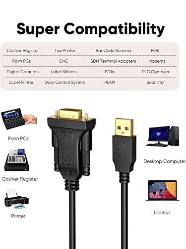 CableCreation Adattatore da USB a RS232, 3 m Placcato Oro USB 2.0 a RS232 DB9 Maschio convertitore seriale Cavo Supporto Cassiere registro, Modem, Scanner, Fotocamere digitali, CNC e sopra, Nero