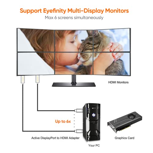 CableCreation Mini DP HDMI, (DP1.2) Attivo Mini DisplayPort a HDMI, DP a HDMI, 4K x 2K e Audio 3D / Video, Il Supporto Eyefinity Multi-Schermo, Nero (6 Piedi / 1.8M)