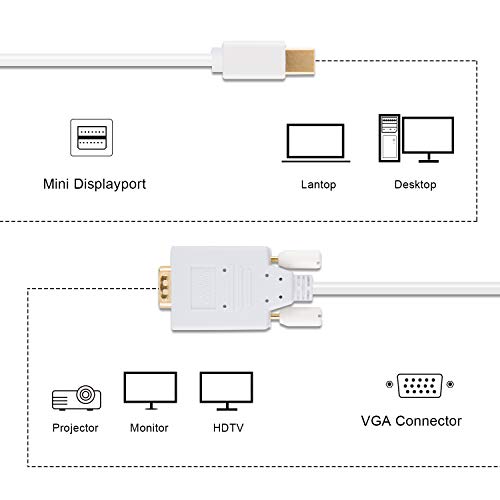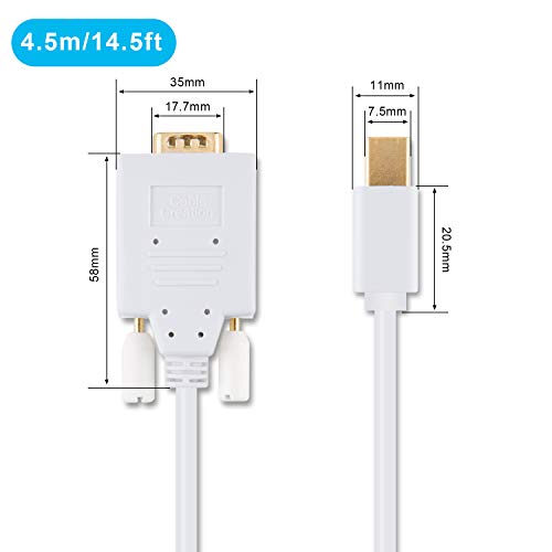 CableCreation L'oro lungo 15 ft mini Displayport (Thunderbolt porta compatibile) al cavo del VGA per MacBook, iMac, Mac Book Air, Mac Book Pro e Mac Pro Surface, 15ft / 4.5M Bianco