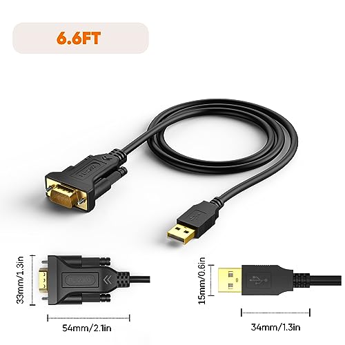 Cavo seriale da USB 2.0 a RS232 DB9 placcato in oro, per collegare dispositivi con connettore seriale DB9 (9 pin) come un modem a una porta USB del computer. Porta USB con velocità di trasferimento dati di 1 Mbit/s.
