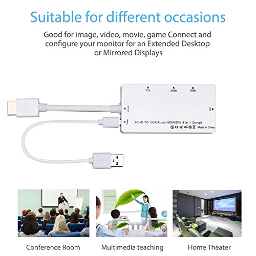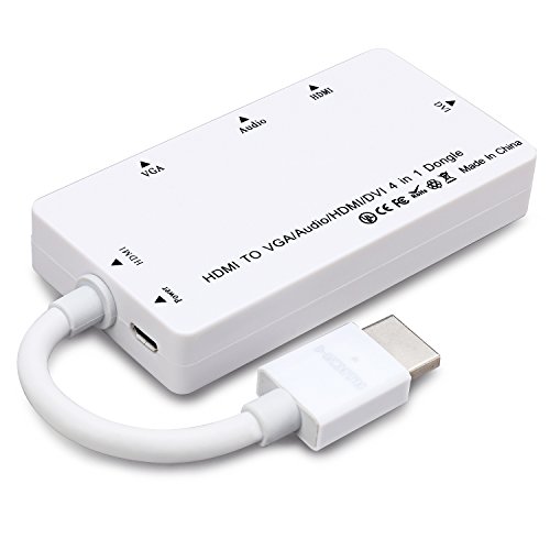CABLEDECONN - Cavo adattatore multiporta 4-in-1 da HDMI a HDMI/DVI/VGA con convertitore di uscita audio (bianco)