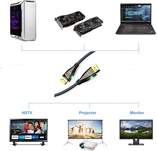 Universal Compatibility and Easy to Use,DisplayPort 1.4 Copper Cable enables to connct from your DisplayPort Source Device to your 4K or 8K DP Display,Enjoy the Ultra High Definition Ultimate Experience of the Big screen,fit for PC Laptop as Source,DisplayPort HDTVs, Monitors, Projectors as Displays,Plug and Play.This DP 8K cable is widely used in home theater, home office, virtual reality, gaming experience