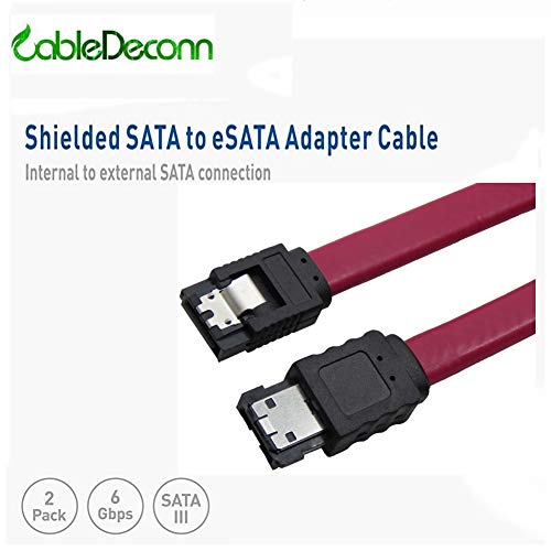 CABLEDECONN SATA TO ESATA 2 Pack Cable Male to Male M/M Shielded Extender Extension HDD 6Gbps (sata to esata 0.5m)