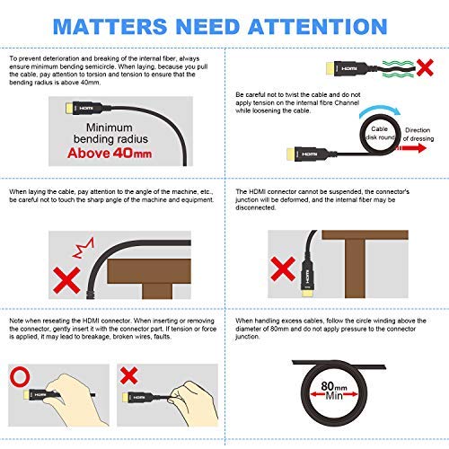 High Speed Bandwidth to 48Gbps,HDMI Fiber Cable,BandWidth reach to 48Gbps,High-speed transmission without signal loss,HDMI Optic Fiber cable Supports up to 200 meters of transmission,supports HDCP2.2/CEC/EDID/eARC