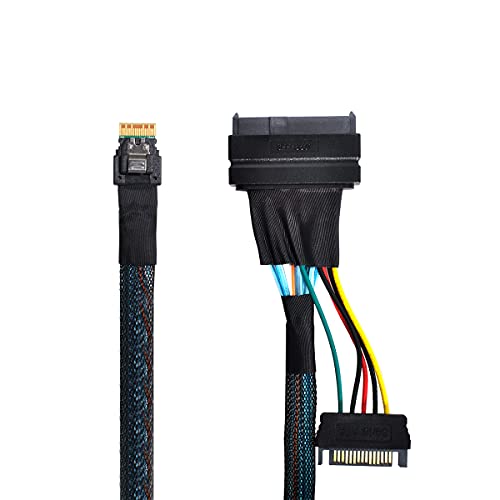 CABLEDECONN SFF 8654 Slimline to SFF 8639 Hard Disk SSD Cable NVME U.2 with 15 Pin SATA Power Cable
