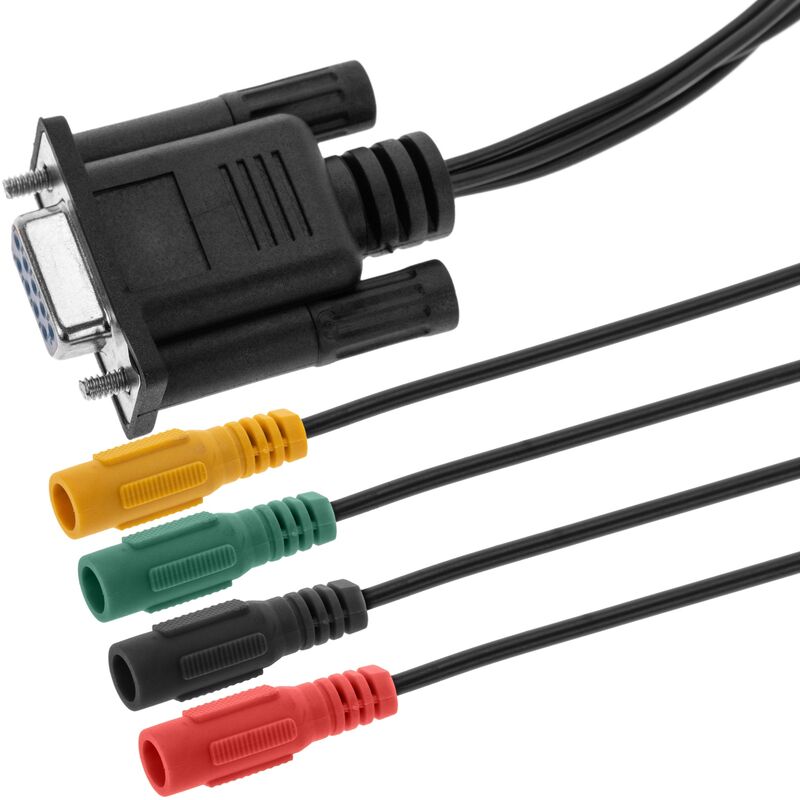 Il cavo di collegamento OBD2 (On Board Diagnostics) consente la diagnostica del veicolo. Possono essere utilizzati sia in auto che in moto, monitorando e controllando il motore e altri componenti al fine di effettuare una rapida diagnosi di possibili guasti che il veicolo potrebbe avere. Il collegamento di un'apparecchiatura diagnostica OBD2 alla connessione di ogni veicolo è unico. A seconda del modello e della marca, avrai bisogno di un connettore o di un altro. Ideale sia per le aziende di riparazione, come le officine meccaniche, sia per i privati che effettuano le proprie riparazioni. Caratteristiche del prodotto CONNETTORI: connettore DB9 femmina ad un'estremità. Il cavo ha quattro connettori a banana femmina;