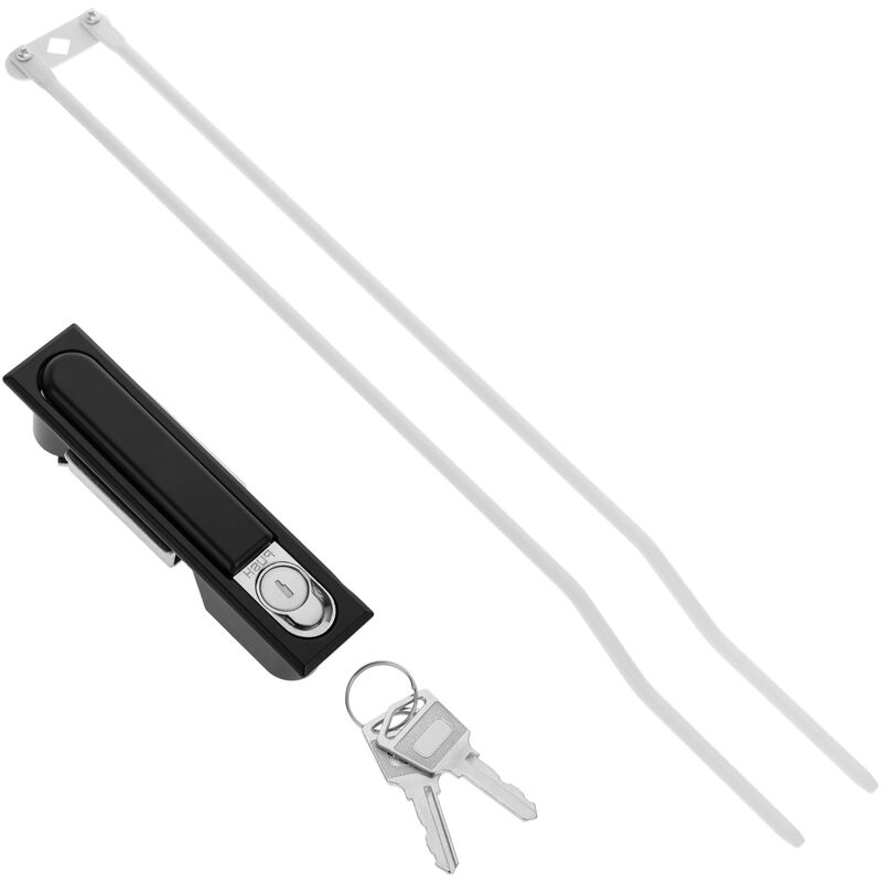 Serratura di sicurezza in metallo con chiave per montaggio e fissaggio sulla porta anteriore degli armadi di carico, insieme alla serratura sono incluse le barre che bloccano l'apertura delle porte. Caratteristiche del prodotto: COMPATIBILITÀ: Kit di montaggio compatibile con 36 armadi di ricarica per laptop. INSTALLAZIONE: La sua messa in servizio è molto semplice e veloce. Vengono forniti tutti gli elementi necessari per una corretta installazione, come le 2 chiavi, le viti e la cornice per il perno. MATERIALE: Realizzato in metallo ad alta resistenza. MISURE: La lunghezza della barra è di 102 cm