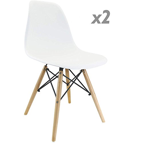Cablematic - Sedia Ispirata alla Torre Eiffel, in faggio, Colore Bianco Avorio, 53 x 47 x 82 cm, 2 Pezzi