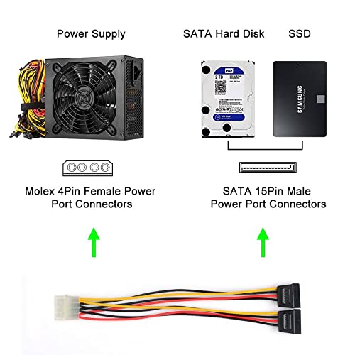 ✅[USO] Consente di alimentare due unità SATA utilizzando una singola connessione Molex a 4 pin all'alimentazione del computer. collegare alla scheda madre a 4 pin IDE Molex connettore e l'altro lato collegare a dischi rigidi a 15 pin o CD ROM.