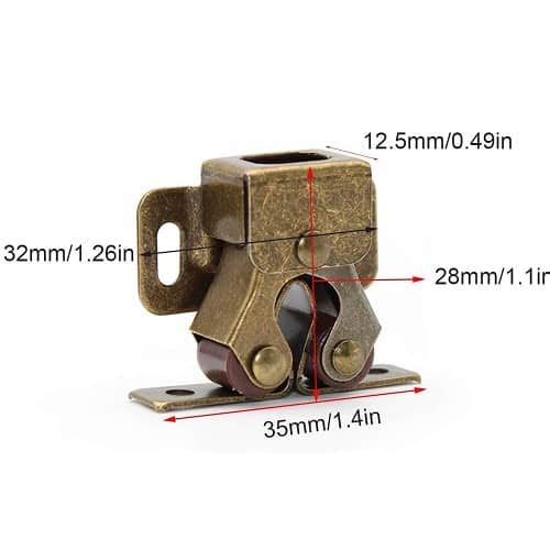 CABLEPELADO Chiusura per porta | Chiusura per porta armadio a doppio rullo | Chiusura per mobili | Acciaio inossidabile | Viti incluse | Finitura ottone lucido