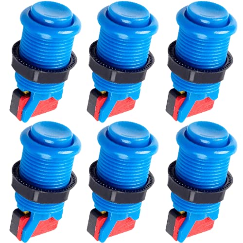 CABLEPELADO Pulsante americano Arcade con microinterruttore | Pulsante macchine Arcade | Pulsante Macchine Jamma | Montaggio: Fori da 28 mm | Include Anello di fissaggio e microswitch | 6 Unità | Blu