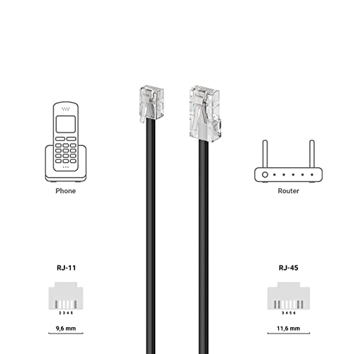 CABLEPELADO Cavo telefonico da RJ11 a RJ45 | Cavo dati per rete Ethernet | Cavo modulare 8P4C | Adatto per modem router fax ISDN DSL VDSL Internet | Nero | 3 metri