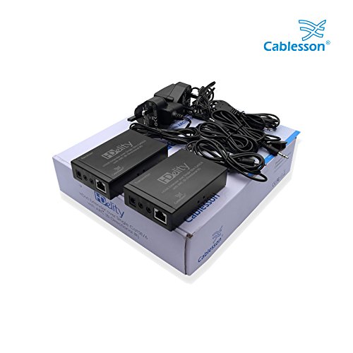 Due unità inclusi. funzionamento plug & play semplice con auto-regolazione del feedback, equalizzazione e amplificazione del segnale. Il cat5e / 6 HDMI extender di Cablesson ha un design ultra compatto alloggiamento e il montaggio a parete per una facile installazione e robusto con connettore di alimentazione di bloccaggio.